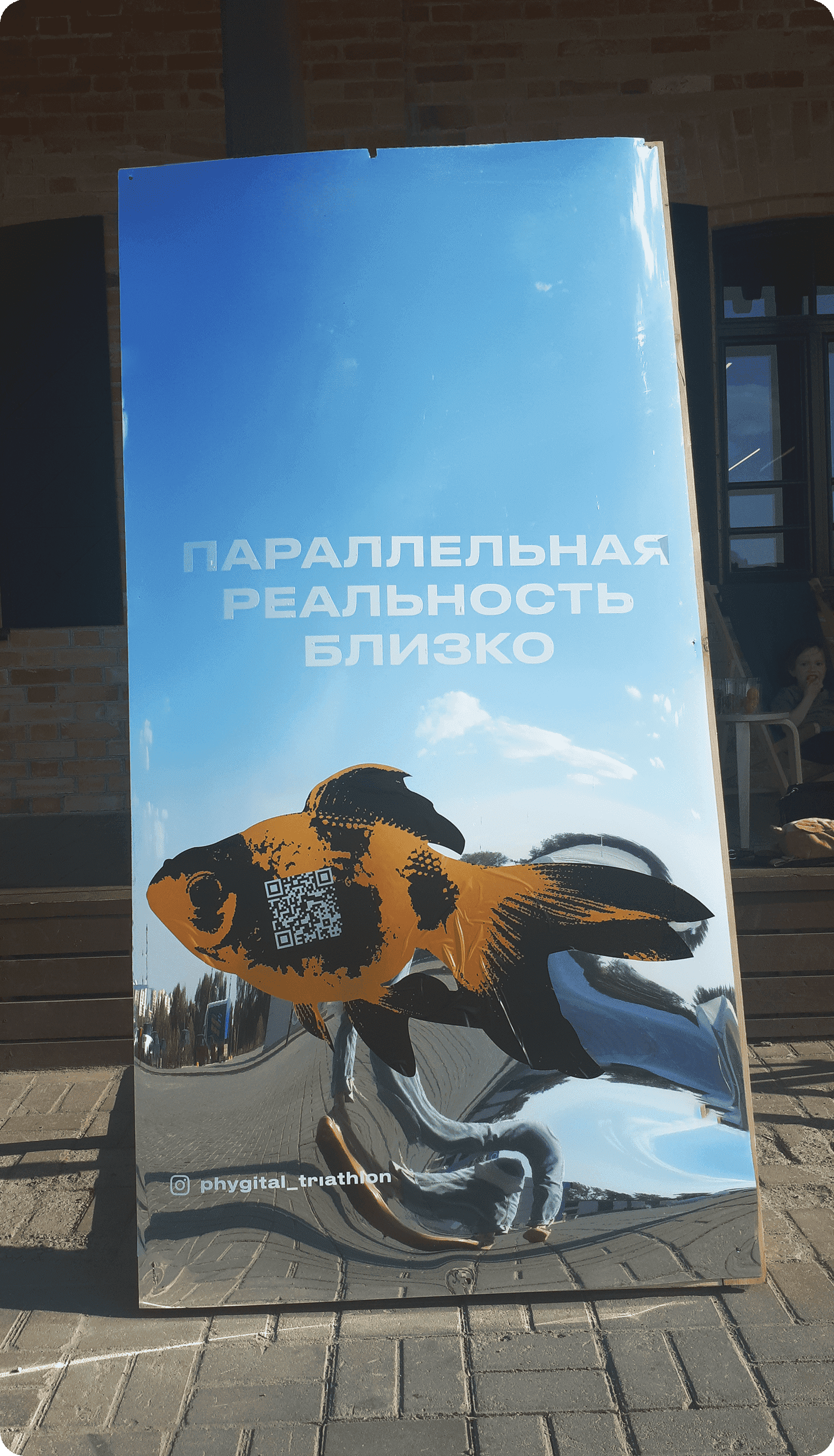Организовали информационный повод, в котором мы встроили в привычную среду (городские парки и скверы) двухметровые зеркала с QR-кодом на инстаграм-маску и текстом «Параллельная реальность близко»